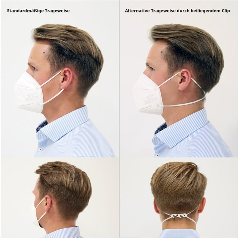 • die Ohrschlaufen schonen die Frisur und geben dem Träger ein besseres Aussehen und Wohlbefinden trotz Maske